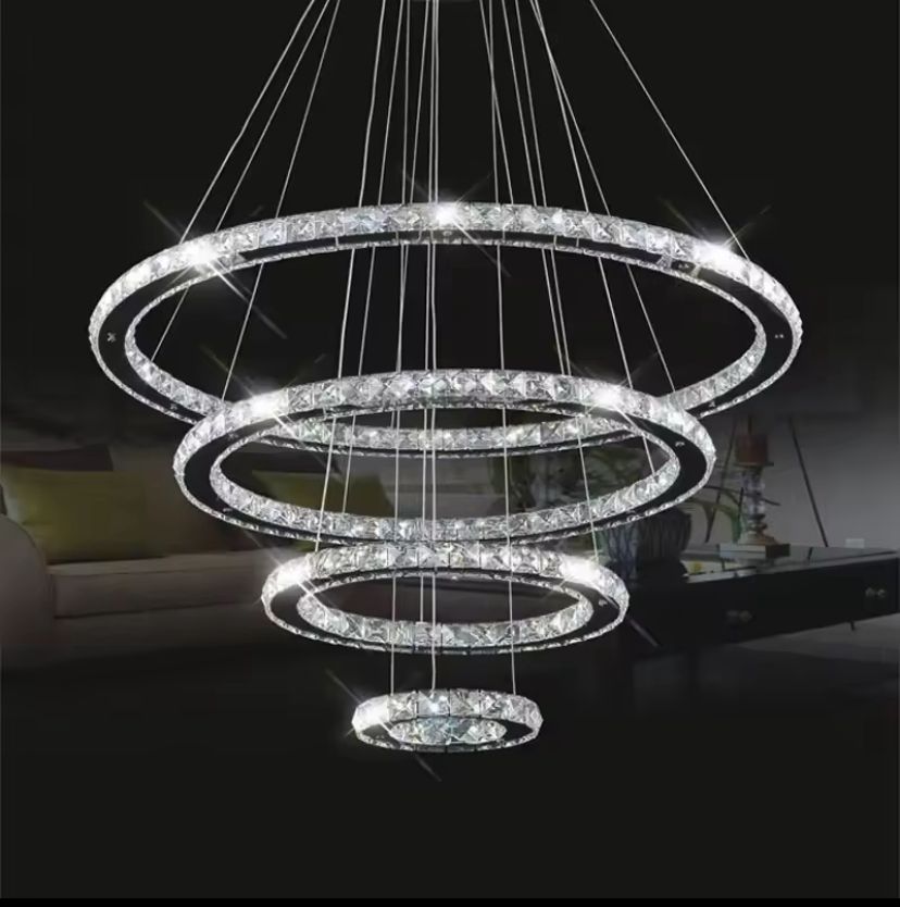 LAMPARA COLGANTE 4 AROS PLATEADA CRISTAL LC-22